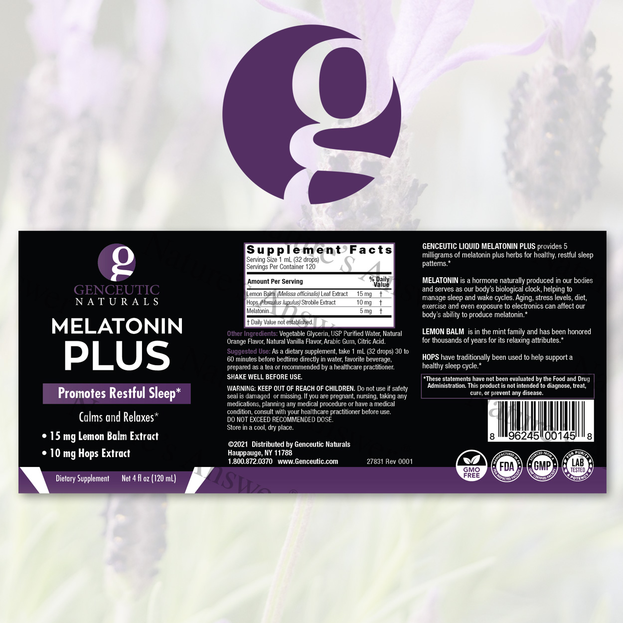 Genceutic’s Liquid melatonin plus is a high quality, convenient form of melatonin used to help you fall asleep easier, faster, and wake up feeling refreshed in the morning. Each serving is 5 mg.